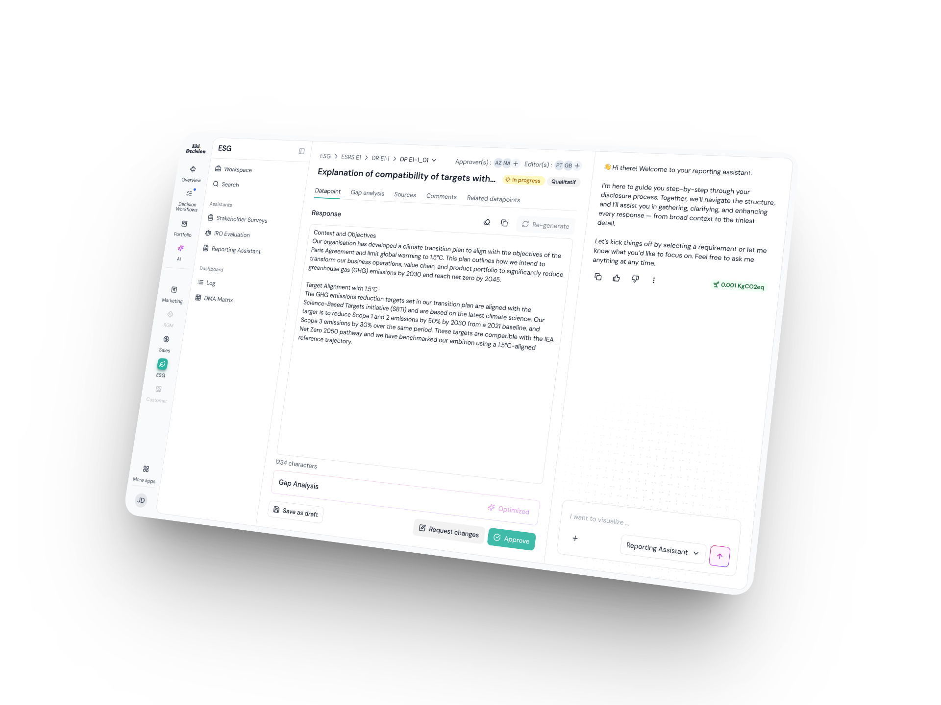 Establish how your ESG data supports credible, auditable decision-making with Sustainability Intelligence. Ensure that decision logic scales across your business thanks to Eki.Decisions.
